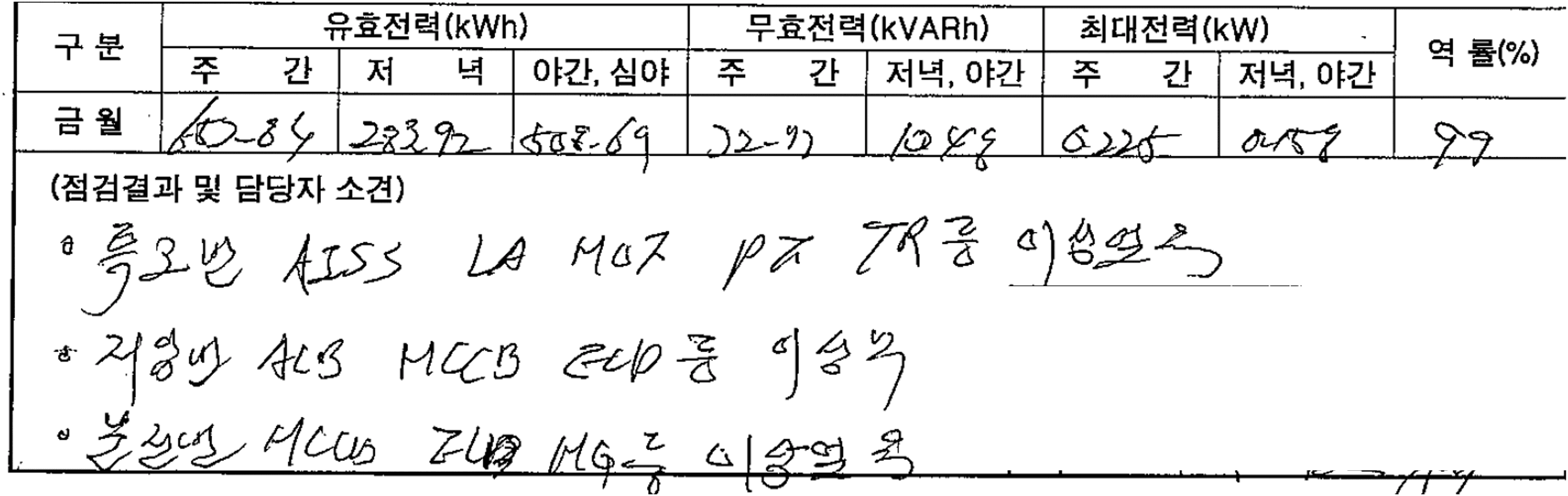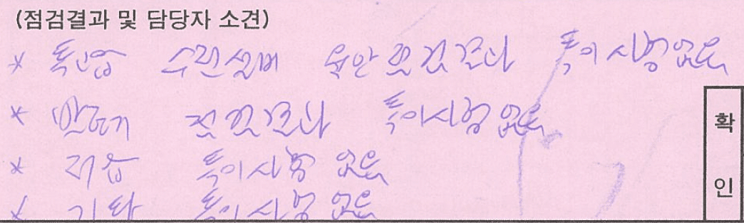 아날로그 수기식 점검기록을